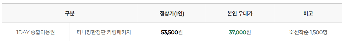 오후권 : 오후 3시 이후 입장 및 이용가능
