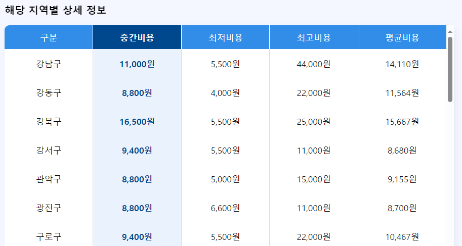 중간비용, 최저비용, 최고비용이 모두 공개돼있다는 것입니다.