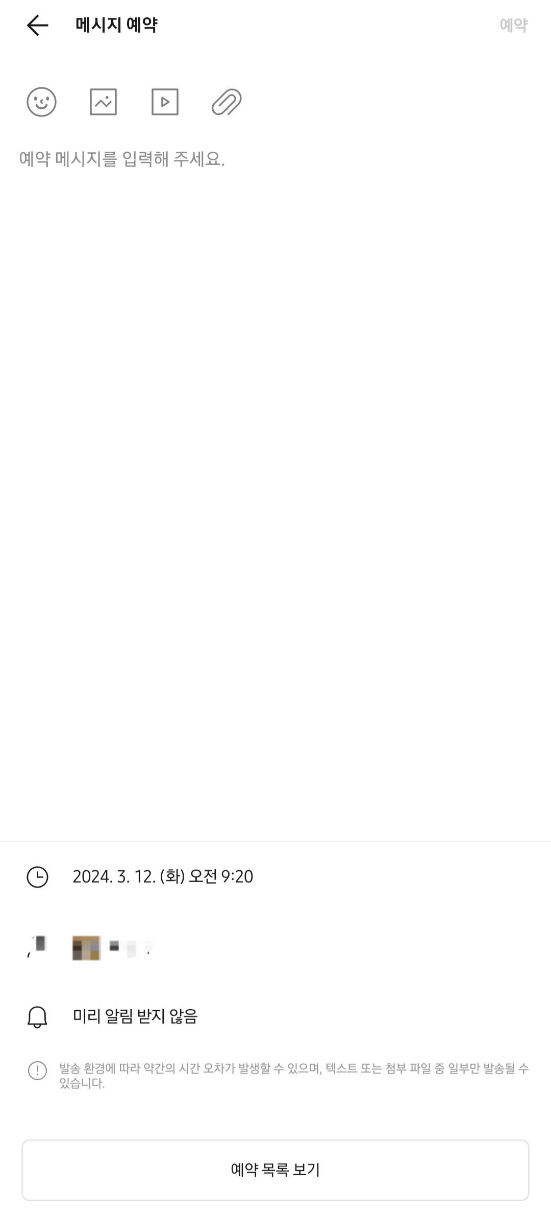√ 예약메시지는 5분 간격으로 1년까지 등록가능하며