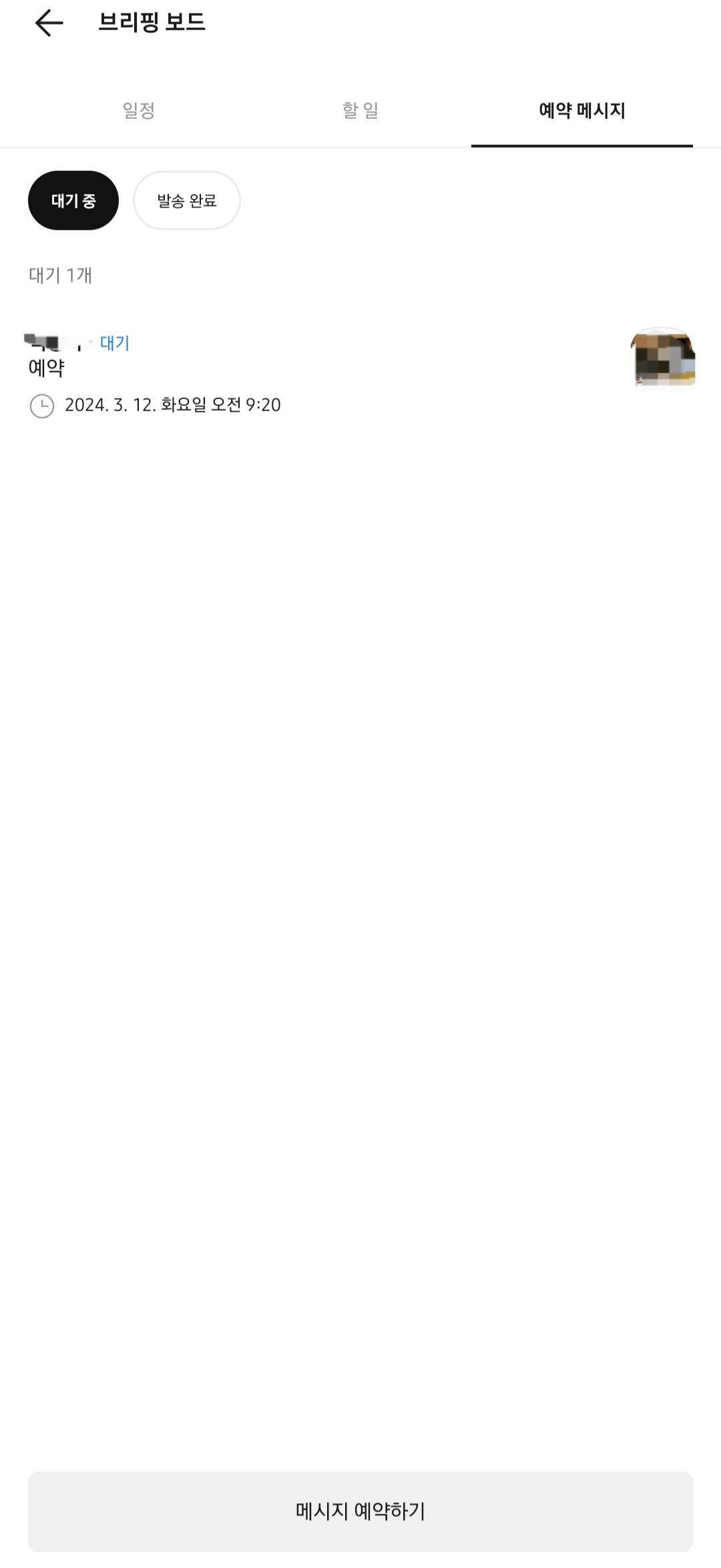 예약메시지 브리핑보드 대기 중 목록에 떠있습니다.