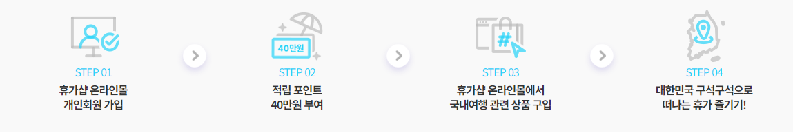휴가샵 온라인몰 개인회원 가입 - 적립 포인트 40만 원 부여-휴가샵 온라인몰에서 국내여행 관련 상품 구입