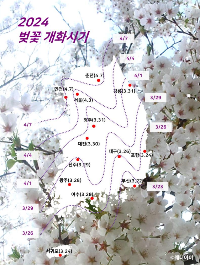 -서귀포에서 3월 24일 시작해서 서울에서 4월 3일경 개화될 예정
